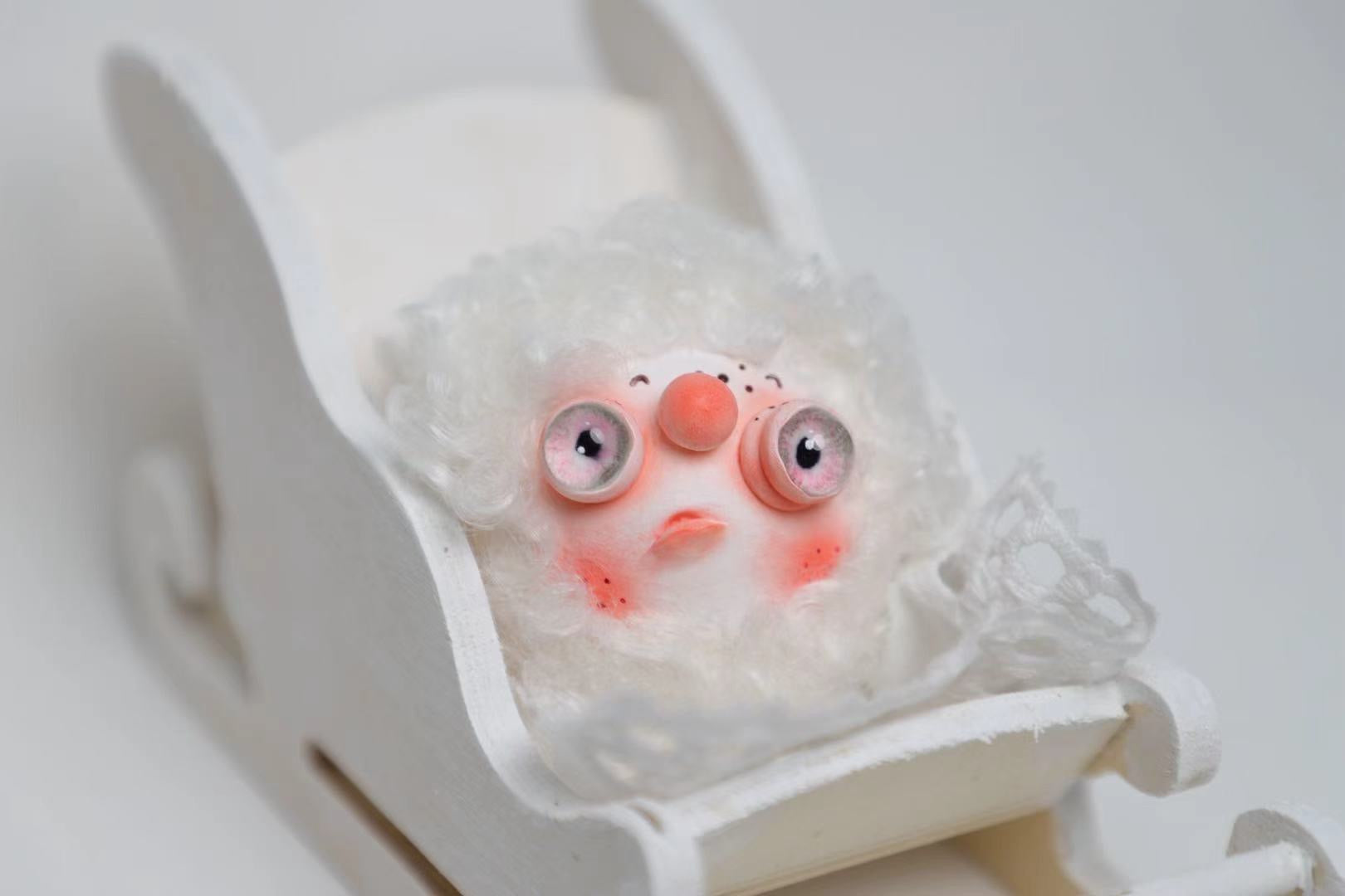 Each original design is hand-molded, shaped, and painted. The legs can be rotated in any direction. The plush is synthetic fur.