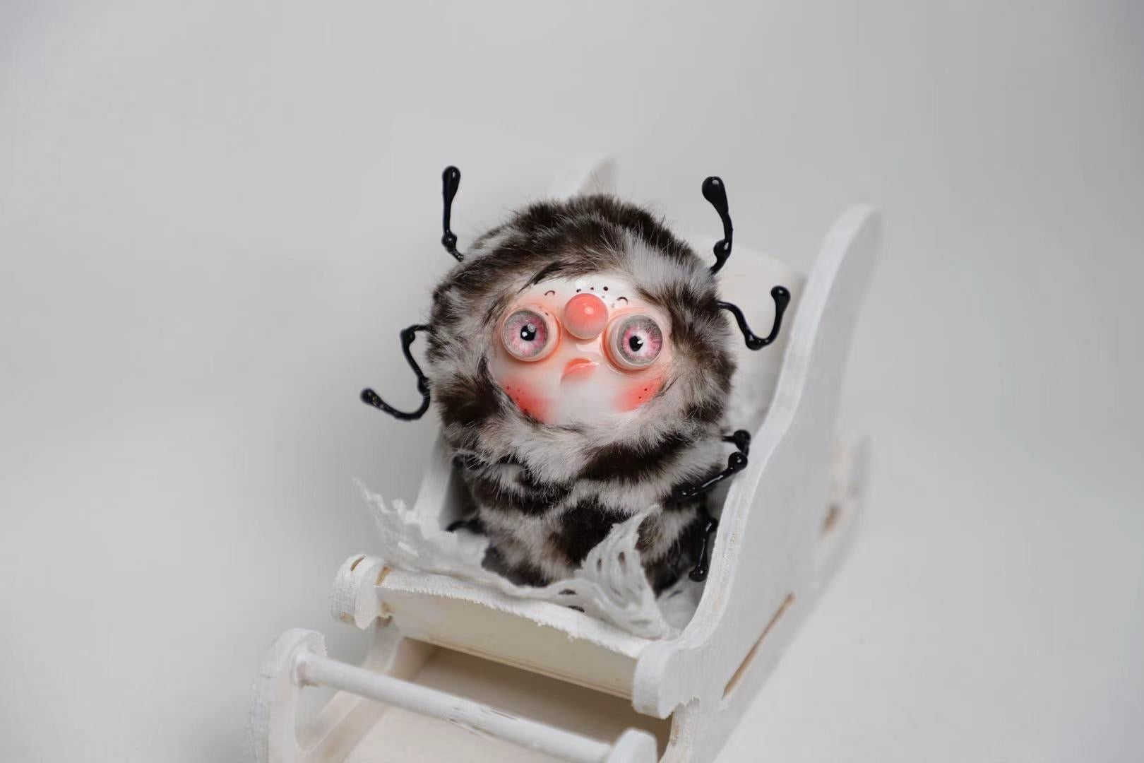 Each original design is hand-molded, shaped, and painted. The legs can be rotated in any direction. The plush is synthetic fur.